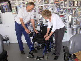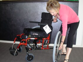 Community Access is enhanced using the special features of light weight wheelchairs. This enables clients and families to manage transfers from vehicles. |