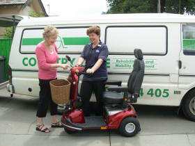 Local medical suppliers provide an excellent range of products. Ensuring the client has the necessary physical, cognitive and vision skills to safely manage a scooter is vital. |